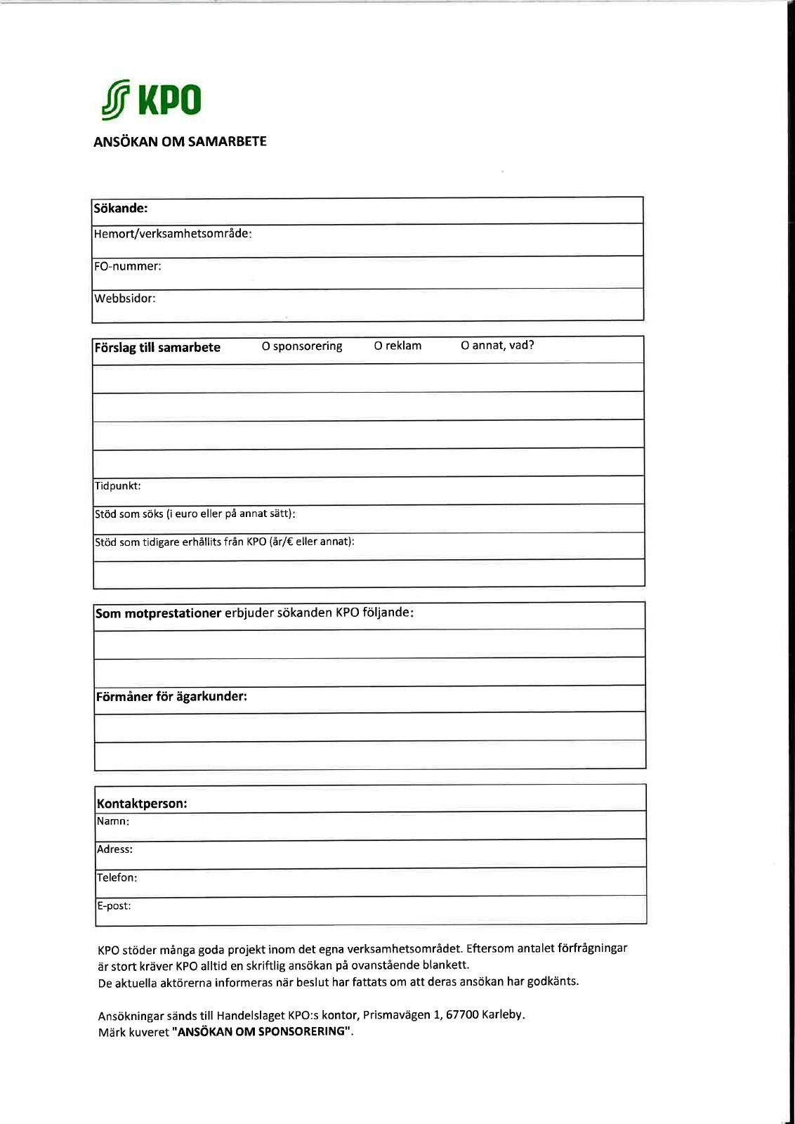 Ansökningarna ska skickas till Handelslaget KPO:s kontor, Prismavägen 1, 67700 Karleby.