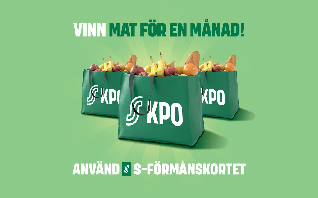 Varje bonusinköpskvitto är en lott! Du deltar när du använder S-Förmånskortet – samla alltså Bonus i KPO:s alla marketar, Sokos, Emotion, ABC, hotell och restauranger. * Gäller Handelslaget KPO:s ägarkunder och parallellmedlar i hushållet 1.4-31.12.2026